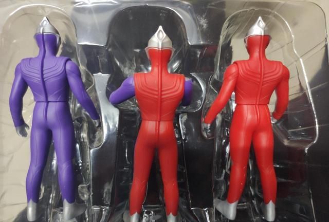 三个背面放在一起看……确实是有点惨不忍睹了,放在现在的通贩500里也有点太难看了。而且迪迦本身的配色并不复杂,通贩一直都在生产都能保证涂装的完成度,作为一款周年纪念产品,这一套EX委实有点敷衍。